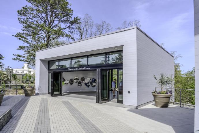 The Barbey Welcome Center, ticket office and bathrooms are cladded with our FSC®-certified® and cradle-to-cradle certified Pioneer Millworks Accoya® Nickel siding, a top choice for sustainability and material health. The acetylated pine siding has significant rot and moisture resistance, the result of a unique vinegar treatment it is given directly after harvest.